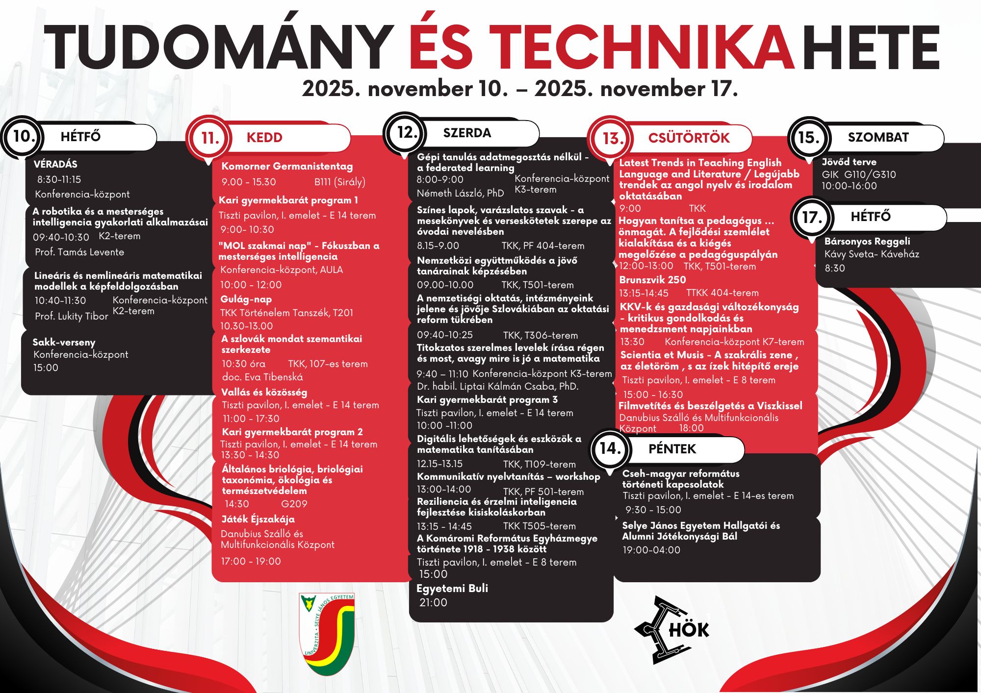 A Selye János Egyetem Tanárképző Kara tizenhárom rendezvényt szervez a Tudomány és Technika Hete keretében (2025. november 10–16.; az SJE teljes programkínálata: itt).