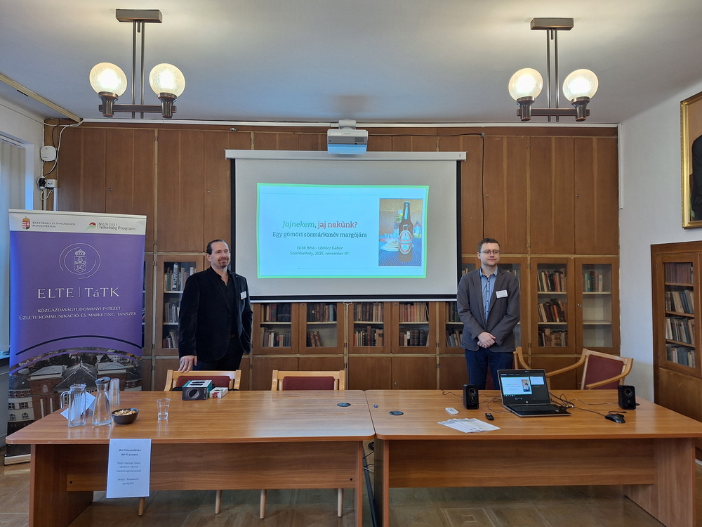 Dr. Istók Béla és Dr. Lőrincz Gábor szekcióvezetőként és előadóként vettek részt a 2025. november 6–7-én Szombathelyen megrendezett Marketingnyelvészet című nemzetközi tudományos konferencián. Szekciójuk a marketingnyelv funkcióival, közös előadásuk pedig egy gömöri sörmárkanév marketolingvisztikai elemzésével foglalkozott („Jajnekem, jaj nekünk? Egy gömöri sörmárkanév margójára”).