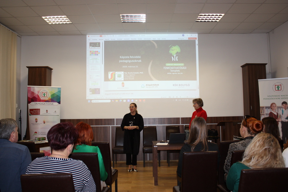 Na seminári sa zúčastnilo 25 učiteľov zo škôl v regióne. Podujatie úzko súvisí s Týždňom udržateľnosti (Fenntarthatósági Témahét), ktorý sa v Maďarsku organizuje už 11. rok. Cieľom tejto iniciatívy je šírenie myšlienky udržateľnosti v školskom prostredí a zvyšovanie citlivosti žiakov voči dôležitosti ochrany životného prostredia. V rámci odborného seminára sa pedagógovia prostredníctvom prednášok docentky Kataríny Szarka oboznámili hlavnými výsledkami výskumu súvisiaceho s Týždňom udržateľnosti, na ktorom sa podieľa Katedra chémie, so zameraním na maďarských žiakov na Slovensku, ako aj detailmi tohtoročného výskumu a základným modelom Týždňa udržateľnosti. Docentka Szarka spolu s Évou Kotiers, pedagogičkou zo Základnej školy Lajosa Tarczyho s vyučovacím jazykom maďarským v Chotíne, predstavili kľúčové témy tohtoročného Týždňa udržateľnosti. Hlavnými piliermi budú: les ako ekosystém, pohyb a zdravie, udržateľná doprava, odpad a vedomé nakupovanie. V rámci týchto tém získali pedagógovia praktické nápady na aktivity priamo využiteľné na vyučovacích hodinách, ako aj tipy na realizovateľné projekty, granty a súťaže. Éva Kotiers, ktorá je držiteľkou ocenení „Najaktívnejšia škola“ a „Zelená víla“ (Zöld Tündér) z roku 2025, obohatila program o inšpiratívne, hravé a kreatívne metodické postupy. Účastníci seminára získali aj cenné informácie o súťažiach Pohár Zelená Zem (Zöld Föld Kupa) od pozvanej prednášajúcej, Katalin Győri Benedek. Táto pedagogička zo Základnej školy s materskou školou Sámuela Gáspára v Číčove sa so svojím tímom opakovane prebojovala až do finále tejto súťaže v rámci Karpatskej kotliny.